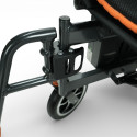 En esta silla también existe la opción de adaptar reposapiés elevables. MedicalPro realiza esta adaptación por unidad y son totalmente extraíbles y se puede volver a poner los reposapiés originales de la silla cuando se requiera.