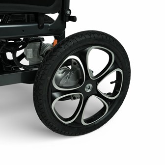 La silla de ruedas eléctrica de movilidad reducida MedicalPro S300 incorpora de serie ruedas traseras neumáticas de gran tamaño (41 cm) con llantas de aleación, lo que se traduce en un mayor confort de marcha y un agarre superior. Su doble amortiguación delantera mejora notablemente la absorción de irregularidades del terreno, permitiendo superar obstáculos cotidianos con suavidad y estabilidad. Las ruedas delanteras, antipinchazos y de gran diámetro (23 cm), refuerzan aún más la seguridad y la comodidad en cada desplazamiento.