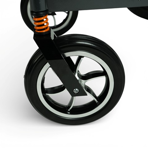 En la parte trasera dispone de ruedines antivuelco, diseñados para ofrecer una protección adicional al afrontar pendientes pronunciadas o terrenos irregulares, aportando una mayor tranquilidad tanto al usuario como a sus acompañantes.