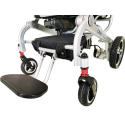 Podrás disfrutar de esta silla allá donde vayas gracias a que se pliega con total facilidad sin necesidad de manipular las baterías. La longitud mínima es de 34cm una vez plegada facilitando así su transporte y almacenamiento. Además dispone de una pata de cabra para guardar o mantener la silla en pie.